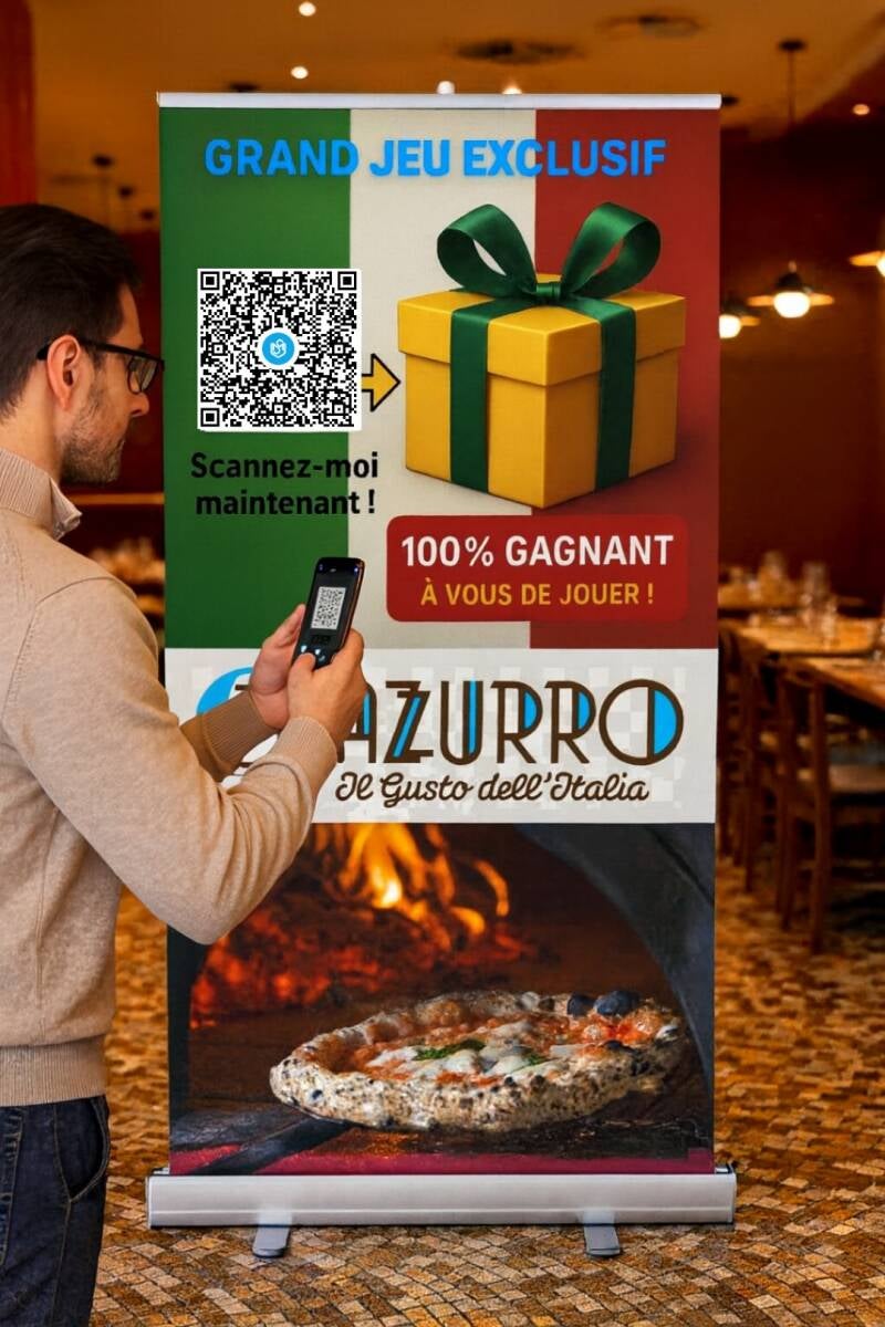 Et en demandant, tout simplement, à vos prospects et clients de récupérer leur cadeau, en scannant votre Jeu 100% gagnant sur vos :